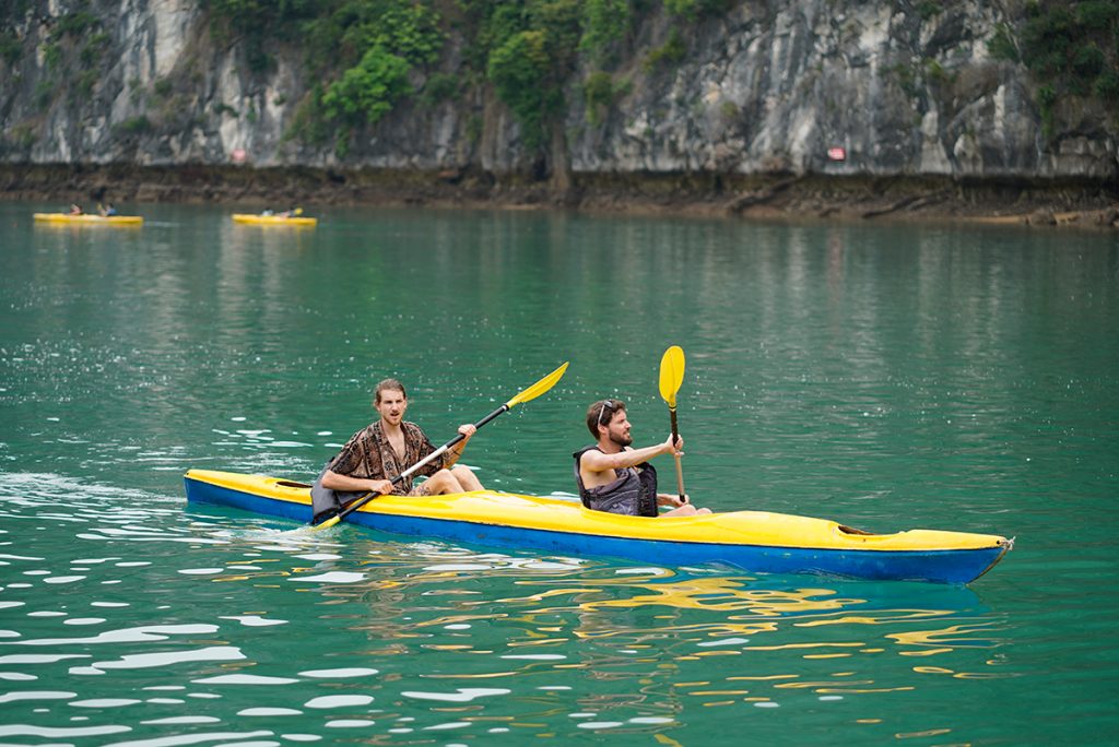 14:30 : Kayaking, Swim and beach hopping at Ba Trai Dao Beach which is very natural, remote, quiet and less-touristy; discoverthe temple beach, more lagoons and arches by kayak