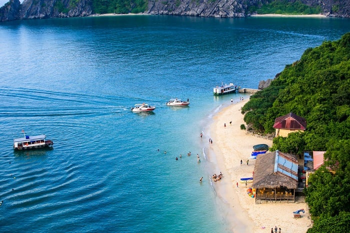14:30 Swimming and jumping from the boat at Ba Trai Dao Beach which is very natural, remote, quiet and less-touristy. We can discover the temple beach, more lagoons and arches.